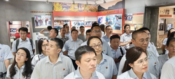 国有企业干部在李锦展览馆参观。