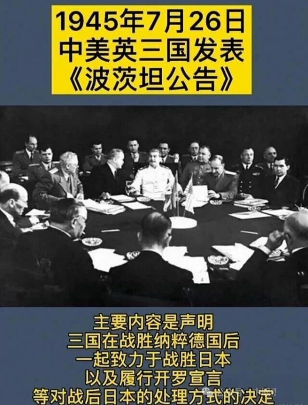 重温一九四五年七月二十六日发表中英美三国波茨坦宣言主要内容如下: