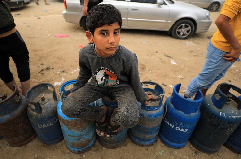 11月25日,在加沙地带南部城市汗尤尼斯,人们排队等待为天然气罐充气。新华社发(亚西尔·库迪摄) 报道说,阿卜杜拉二世将呼吁与会方敦促以色列结束对加沙地带的物资封锁,重新开放边境口岸,允许援助物资畅通无阻地进入加沙地带。 联合国官员说,他们早已要求以方重新打开以色列与加沙地带东南部交界的凯雷姆沙洛姆口岸。巴以新一轮冲突爆发前,超过六成货运物资经此进入加沙地带。