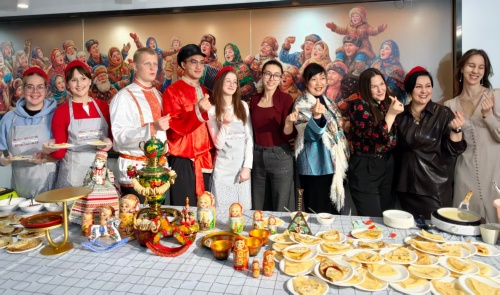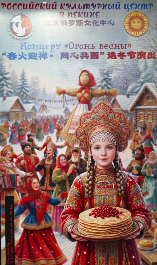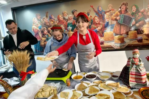 2月18日下午,北京俄罗斯文化中心变身一片洋溢着浓郁俄罗斯风情的欢乐天地。今年俄罗斯送冬节恰逢中国新春,两大传统节日奇妙相遇,奏响了一场跨越时空和文化的温暖对话…… 俄罗斯新年后的传统节日——送冬节,又称谢肉节,是俄罗斯新年后第二个最热闹的节日,起源于古斯拉夫人的春耕节。东正教将其与春季大斋戒结合,因斋期禁肉得名谢肉节。于每年2月末至3月初举行,为期一周。节日以庆祝春神战胜寒冬为核心,传统仪式包括烤制象征太阳的圆形薄饼、焚烧象征寒冬的稻草人及狂欢游行。节期每日活动涵盖家庭宴请、相亲集会及宽恕日和解等主题,苏联时期新增时装表演及住宅装饰竞赛等庆祝形式。20世纪60年代苏联政府调整节日名称与内涵,淡化宗教色彩,延续至今成为四季节日之一。 俄罗斯送冬节(谢肉节)虽然同中国的春节习俗各异,却有着共同的心愿:送别寒冬,迎接光明、温暖与新生。 现场几位身着俄罗斯民族服装的英俊、漂亮的青年男女,在为来宾烤制象征太阳的传统圆形薄饼和其它美食。薄饼烘焙工坊与茶歇区成为全场焦点,让每一位来宾沉浸式感受俄罗斯传统民俗。活动成果格外喜人:现场共烤制近1000张薄饼与松软松饼,搭配炼乳、蜂蜜、自制果酱等各式馅料,美味刚一上桌就被一抢而空。