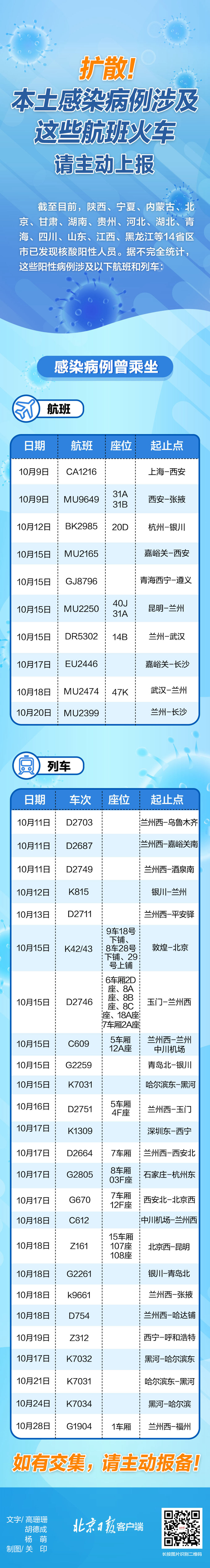 当前位置:首页 >> 国内 >>本土感染病例涉及这些航班火车,有交集请报备