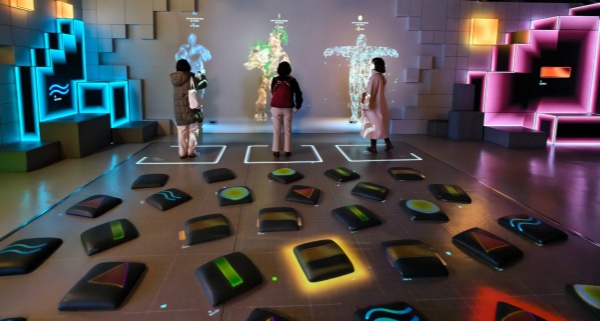 活动的最后一站,记者一行来到北京中轴线的最北端 ——钟鼓楼。这里曾为元、明、清三代的报时中心,至今仍在晨钟暮鼓中诉说着古都生生不息的故事。 随着2024年北京中轴线申遗成功,钟鼓楼吸引着越来越多的游客到访,东城区对于文化遗产在修缮保护和活化利用的成果也被越来越多人看到。步入鼓楼,“时间的故事” 数字沉浸展吸引游客如织,记者们置身古建之中,通过沉浸式的数字展、丰富的交互体验,全方位感受着北京中轴线的历史价值与文化内涵。该展览也荣获了“2022年度北京博物馆优秀展览评选优秀奖”。