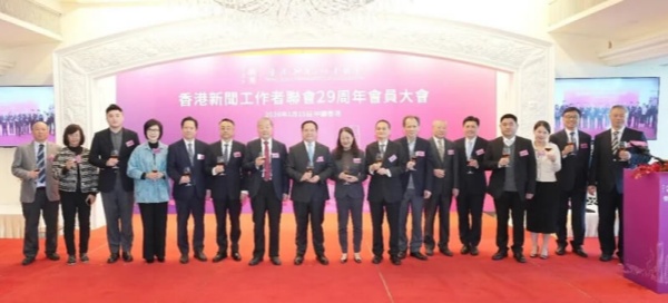 (中外新闻社 中外新闻网记者 刘登臣 胡树萌 魏炯才 )2026年1月15日,香港新闻工作者联会在香港召开29周年年会,香港政府新闻处处长廖李可期女士、中央驻港联络办宣传文体部副部长李曙光先生、香港行政长官办公室新闻统筹专员谢振中先生担任主礼嘉宾。中外新闻社总裁韦燕率本社15名会员出席。会上,韦燕总裁同香港新闻联主席李大宏、会长张国良进行友好交流,与会嘉宾及会员共同回顾过去一年的耕耘与收获,共商新阶段业界团结发展之大计。 香港大公文汇传媒集团董事长兼大公报社长、香港文汇报社长、香港新闻联主席李大宏在会上作主题报告,他指出,过去一年,新闻联始终秉持“爱国爱港、专业创新、服务业界”的宗旨,围绕提升影响力、拓展新平台、团结业界三大方向积极作为,以“局中人”的担当、“运动员”的干劲、“引领者”的视野,向全体会员和社会各界交出了一份厚重提气、亮点纷呈的年度答卷。