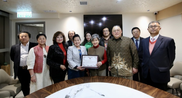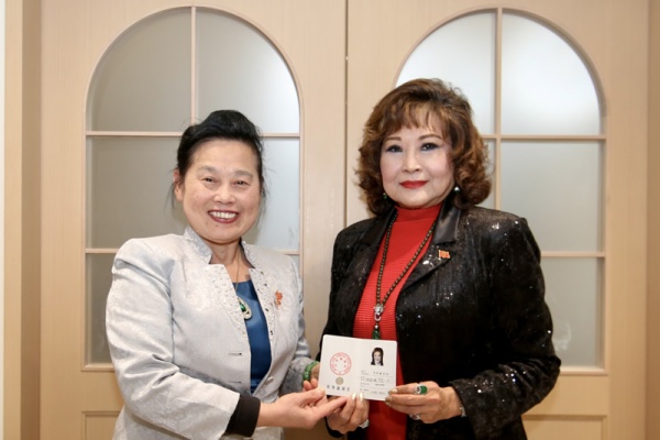 中外新闻社总裁向陈姶Jìng社长颁发“中外新闻社记者证”