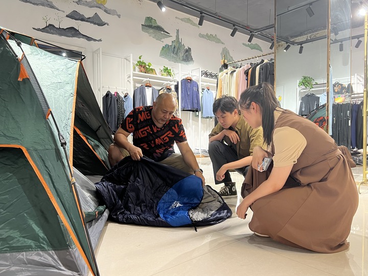 野三坡景区可野露营基地负责人晋探宇(右)在为顾客服务(7月19日摄)。新华社记者 高博 摄 从去年经营露营基地开始,晋探宇见证了这个行业的快速发展。在他眼里,露营已经向着“精致化”的方向发展,“除了过夜露营体验,我们还为客人提供了营地下午茶、露天影院、户外徒步等体验服务”。 北京第二外国语学院旅游科学学院教授崔莉表示,疫情防控常态化背景下,露营旅游依托短途、亲近自然、社交等属性,成为众多游客的选择。随着城乡公路等基础设施逐渐完善,露营也成为经济社会发展的产物。 根据艾媒咨询发布的“露营经济”相关报告显示,中国国内露营营地市场规模从2014年到2021年实现了4倍增长,规模从77.1亿元增至299亿元,预计2022年增速达到18.6%,市场规模将达到354.6亿元。 中国社会科学院财经战略研究院研究员魏翔认为,露营起初是为满足户外探险的野外露宿需求而出现的,专业性较强,后来发展成为一种小众休闲旅游方式,如今则成为普通人度假、住宿的休闲方式。 “这款帐篷防晒性比较好、展开特别方便、营宿也舒适,现在购买还赠送小串灯,增加户外露营的氛围感。”暑期以来,由于店内生意火爆,店员忙不过来,邢台市悍途户外专卖店负责人刘阳亲自当起导购员,为顾客介绍产品。 “多数顾客都是来买帐篷、吊床这些露营装备,一个周末营业额七八万元。”刘阳说,“近两年消费者对露营品质有了更高要求,我们店里户外产品也从最初的帐篷、睡袋等传统硬件,延伸到咖啡、家居、户外灯架、营地车等新类目。”