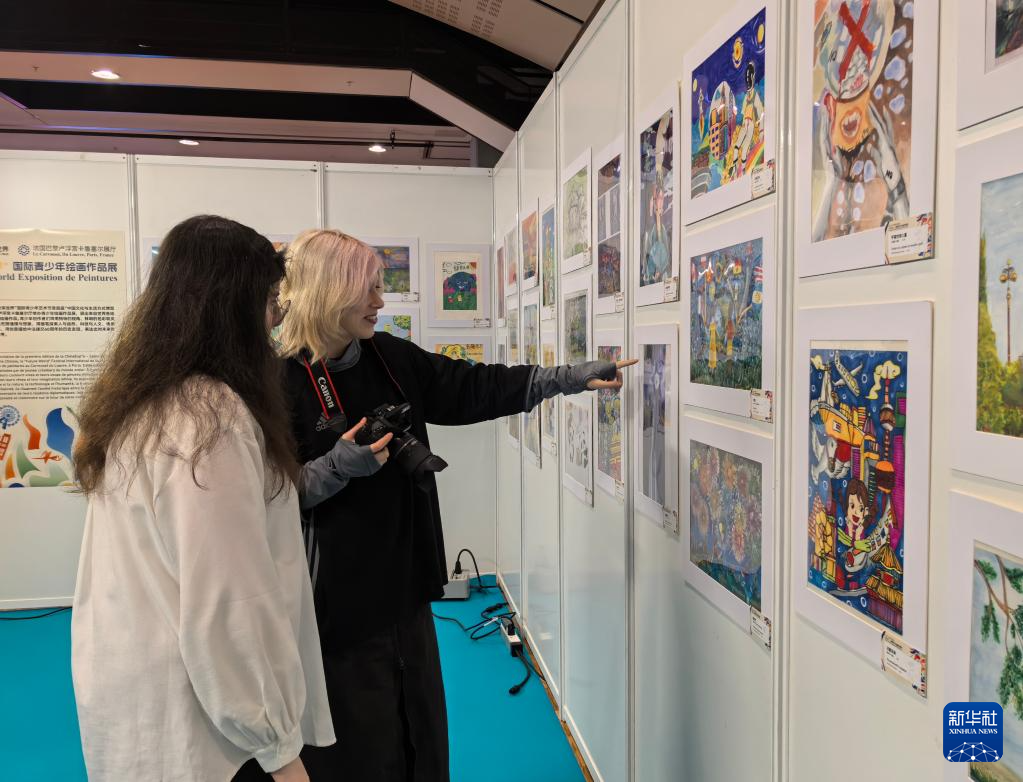 12月20日,人们在法国巴黎卢浮宫参观“未来世界”国际青少年绘画展。新华社发(五洲传播中心供图) 新华社巴黎12月21日电(记者邢建桥)“未来世界”国际青少年绘画展20日在法国巴黎卢浮宫卡鲁塞尔展厅开幕,展出来自二十余个国家和地区的五十余幅青少年绘画作品。