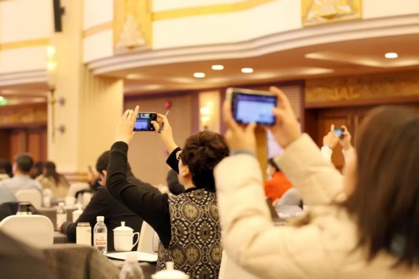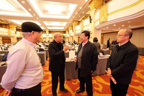 12月3日, 李锦与国务院国资委原党委委员、中国石油和化学工业联合会第四届理事会会长李寿生(左二)、副会长兼秘书长崔建华(左一)、中化矿山地质总局党委副书记龙元清(右一)在一起交流对国企改革的看法。