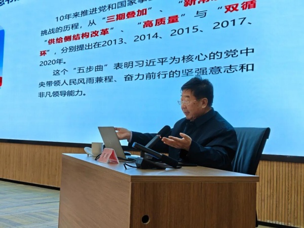 12月9日。李锦在四川绵阳科技城新区产教融合实训基地为银河化学集团等企业进行“学习贯彻党的二十届四中全会精神”专题辅导。围绕党的二十届四中全会的时代背景、重大意义、主要成果和《决定》的框架内容,进行了系统梳理和深入解读。结合当前经济形势与国企改革发展实际,进行有针对性的辅导。李锦分析银河化学的国企改革情况,认为银河化学是县级国有企业改革最具典型性的实体经济,值得在全国范围推广。