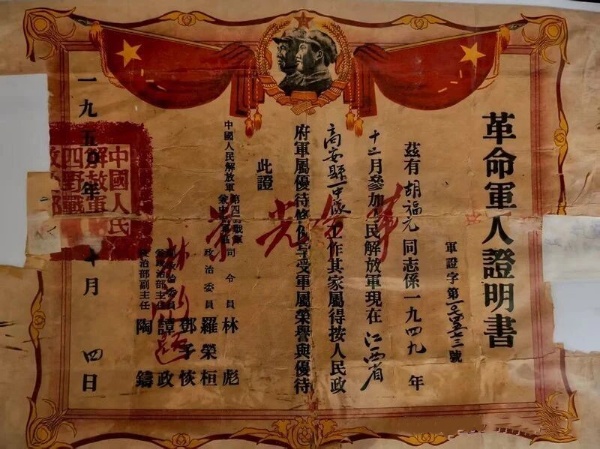 (三) 1957年冬,胡母的身体已是油尽灯枯,加上对儿子的思念与无望的等待,终于一病不起。那段日子,都是胡国均一家日夜尽心看护。胡母临终前,拉着胡国均的手,泪水无声地滑落,“我一个孤寡老人,这些年全靠你们照应,可我没有半点值钱的东西能够报答……我只有福元的这张证书,你替我收好,等福元回来……他一定会回来的!”胡母终是带着未竟的心愿与深深的遗憾走了。她的身后事,都是由胡国均一手操办,妥善安葬。胡国均守着承诺,将证书藏进柜子。这一“等”,又是四十个春秋。1997年,胡国均病重在床,在他生命的最后时刻,他又将这一纸证书交到儿子胡尧生手中,再三嘱咐他好好保存,”等你福元叔叔回来!”如今,胡尧生也已是满头白发老人,他曾携带着这张《革命军人证明书》前往高安人民武装部查询,但由于胡福元的档案并没在高安本地建档,最终未能查到任何相关信息。胡尧生老人说,他从未曾放弃寻找胡福元的信息。他只想知道:他的福元叔叔为何在1956年寄出最后一封信后,再也没与老家这边联系?他是否在西藏平叛战役中牺牲?若已牺牲,他的忠骨又葬在何处? 硝烟散尽,山河无恙,而英雄却不知所踪。但,胡福元这个名字,不应随着时光流逝而湮没,而应当被华林家乡的人民铭记,被更多的人们铭记! 这张编号为"军证字第“一〇七四五七三号"的证书,历经七十余载的风雨,它承载的早已不止是一位战士的身份证明,更是一份跨越血缘的深情托付,两代人无声却坚定的守候,以及一个慈母至死未熄的期盼。 愿英雄的精神得以传承,愿这段家国记忆,代代相传。这不仅是对胡福元前辈最好的告慰,更是对千千万万无名英雄的深切致敬! (编辑:思雅) |
