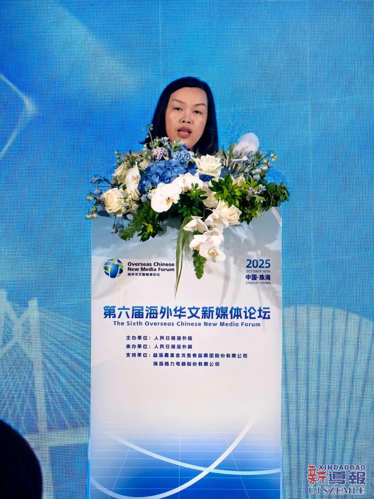 新导报讯:2025年10月16日由人民日报海外版主办,人民日报海外网承办的“文化出海”主题论坛于珠海举行。论坛上欧亚论坛主席、瑞士欧亚集团董事长、iBevent AG创始人朱爱莲发表题为《让文化成为中国出海的“软力量”——用数字科技助力中华文化走向世界》的演讲。她强调,数字科技正成为中华文化走向世界的重要引擎,应以科技创新赋能文化表达,让世界更深刻地理解中国、感知中国。