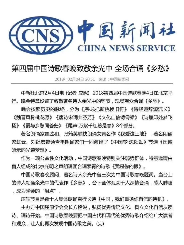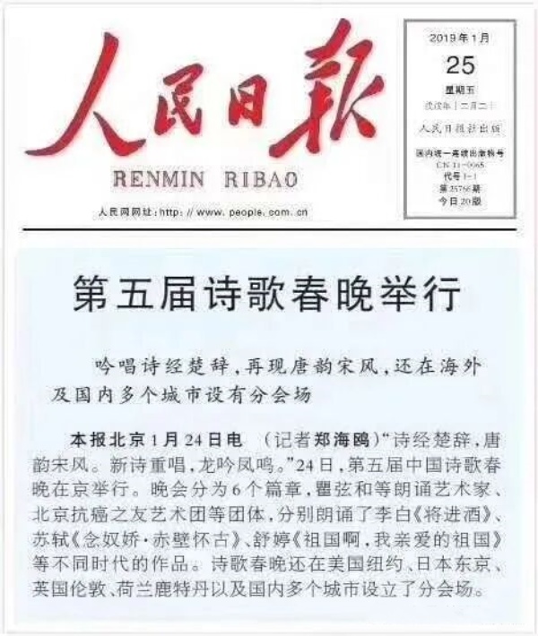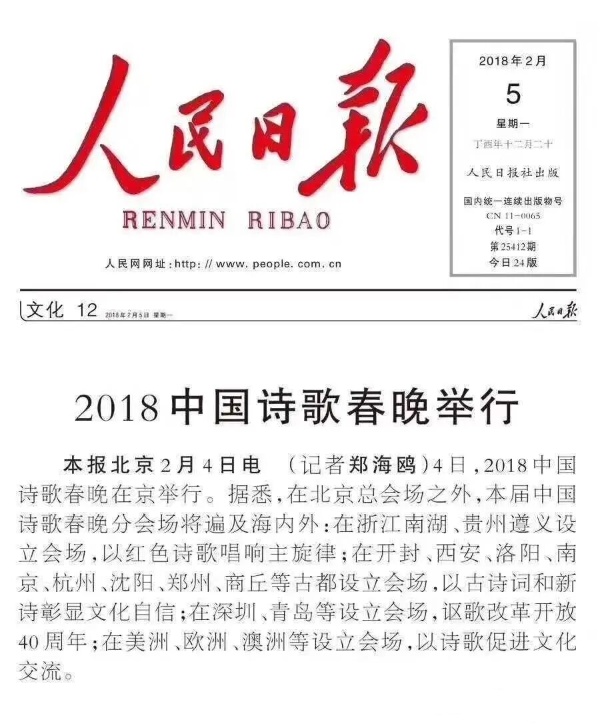 据悉,中国诗歌春晚创办于2015年春节前夕,在国家知识产权局进行备案,由教育部人文社会科学重点研究基地首都师范大学中国诗歌研究中心、中国诗歌春晚组委会、中国诗歌研究中心朗诵艺术团等主办,迄今已成功举办十一届,在全球设立近100个会场。著名诗人谢冕、吴思敬、郑愁予、席慕蓉、舒婷、赵敏俐、钟振振、刘福春、唐晓渡、孙晓娅、曾凡华、峭岩、黄亚洲、桑恒昌、卢盛江、王巨川、王士强、北塔、冰峰、秦立彦等担纲顾问。已故著名诗人余光中、洛夫生前担纲顾问。瞿弦和、张筠英、虹云、刘纪宏等名家在舞台上精彩绽放。汪葆明任艺术总监,屈金星任总策划、总导演。人民日报、新华社、中央电视台、光明日报、解放军报、中国新闻社等数百家主流媒体曾进行过报道,累计辐射十数亿人次。中国诗歌春晚已经成为中国乃至世界诗歌界的品牌。目前,2026第十二届中国诗歌春晚正在积极筹备。 (文/图于小高、张学英、周步、王长征)