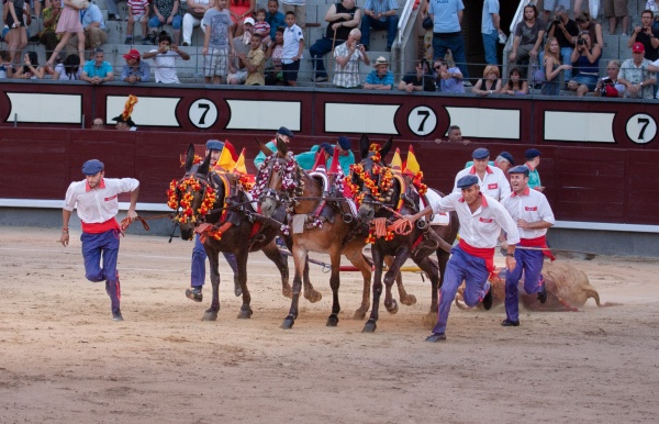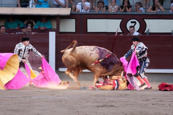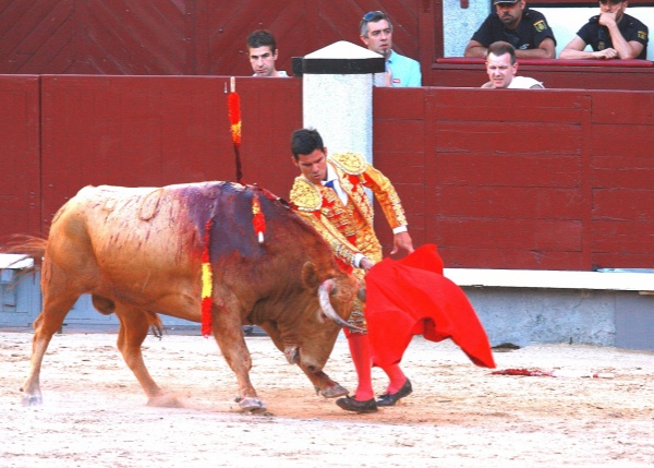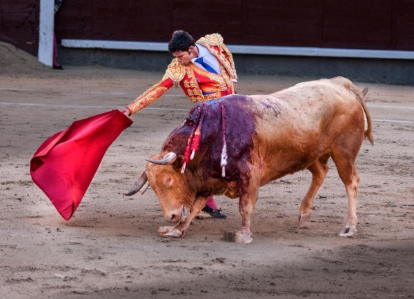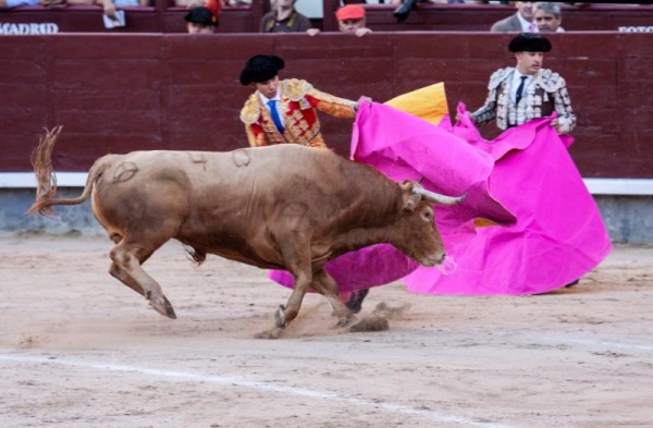 三名斗牛士,六条公牛,三轮递进,一场完成。长矛手刺颈,花镖手插背,斗牛士以红布引牛,终以一剑穿心,结束公牛生命。每一次闪避都是舞蹈,每一剑刺下都是审判。牛死,是结局;人胜,是仪式的高潮。