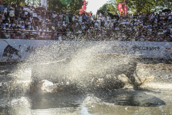 中国斗牛文化可追溯至远古时期,主要分布在南方地区,与农耕文明和牛图腾崇拜密切相关,具有深厚的文化底蕴和地域特色。金华古称婺州,金华斗牛又称婺州斗牛,是浙江省金华市的传统民俗活动。1986年,时任中国戏剧家协会主席的曹禺先生(中国现代话剧的奠基人之一,杰出的剧作家,国家级文化名人)到金华考察,在观看了婺州斗牛表演后非常激动,给予了极高的评价,并当场题词,将婺州斗牛誉为“东方一绝”。