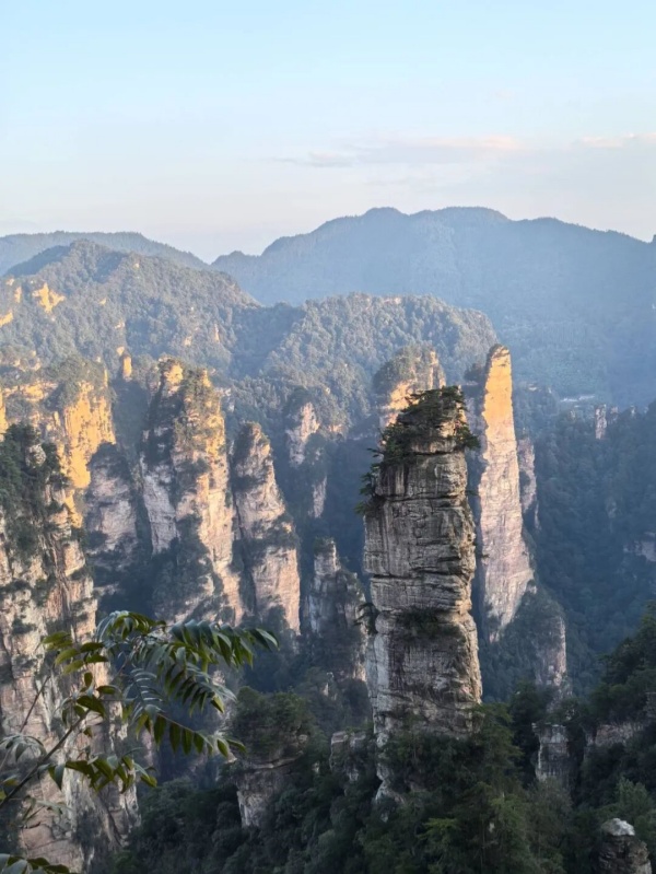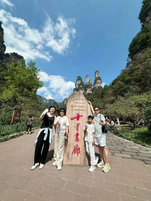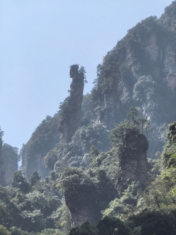 中国湘西有一个叫张家界的地方。这地方虽不大,但名气很大,不仅国内家喻户晓,而且扬名天下。 张家界何以有如此魅力让海内外游客络绎不绝地向往前行?有人说是天门山上的999级“天梯”和通天之门,有人说是大峡谷里全透明玻璃铺设的世界首座斜拉式高山峡谷玻璃桥,有人说是黄龙洞中的龙王宝座和定海神针......而我心心念念的却是高耸在国家森林公园中令人叹为观止的三千奇峰。 国庆假期,不顾旅游旺季景点人挤人、人看人的烦恼,我们一家人(爱人、儿子、丈母娘,女儿因事去江西不能同行)毅然踏入张家界,来一场与亿万年地质奇观的心灵对话之旅。 三千奇峰是指张家界国家森林公园(武陵源景区)的石英砂岩峰林地貌,以其3100多座形态各异的石峰而闻名,是世界自然遗产和地质奇观的核心。我们预约了两天时间到十里画廊、袁家界、天子山、黑石寨去游览和触碰这片大地母亲的伟大杰作,感悟鬼斧神工的造物巨匠,领略奇峰异石带来的极致之美。 在360多平方千米的面积中,三千奇峰或平地或溪边或山腰拔地而起(高度超过200米的有1000多座),如剑如戟,直指苍穹;造型各异,若人、若神、若仙、似禽兽、像器物,栩栩如生;气候景观莫测,霞日、云雾、雨雪、月夜,峰林变化万千,如一幅天地泼墨的巨幅山水画,美不胜收。 晴朗的午后,山风轻柔地拂面而来,心旷神怡。当我们沿着游览路线攀爬在石阶上、漫步在溪流边,尽情地欣赏着峰林中一阶一景、一步一景时,那份离开都市喧嚣的喜悦无不洋溢在全身的每个细胞,大脑的思维瞬间扩散开来,喷发出一个个有关三千奇峰的奇怪话题。