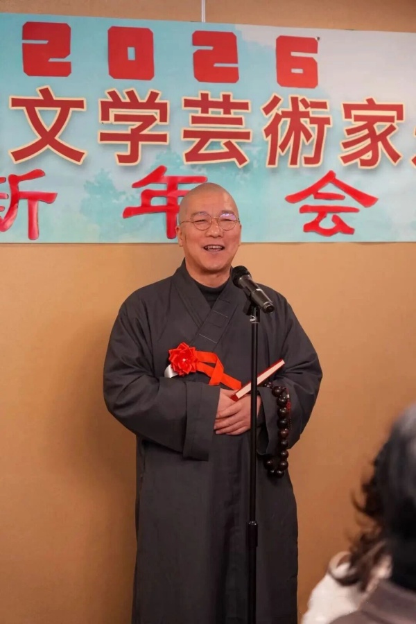 京都万福寺总务总长荒木将旭在致辞中,对现场来宾表达了新年祝福和问候,并表示将继续与日本中华文学艺术家连合会开展各项合作。