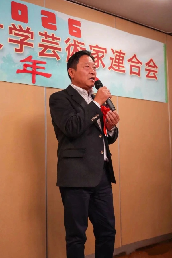 1月11日下午,2026日本中华文学艺术家连合会新年会在位于大阪天王寺的中华料理枫林阁隆重举行。日本中华文学艺术家连合会现任会长叶卫阳致辞并作连合会年度报告,其他致辞嘉宾还包括:京都万福寺总务总长荒木将旭、西日本华侨华人协会会长毕广军、大阪中秋明月祭执行委员长王天佐。中国驻大阪总领事馆副总领事魏有美也专程前来并代为宣读了薛剑总领事的贺词。此外,日本中华文学艺术家连合会名誉会长陈允陆、谢春林,副会长张述洲(原神户中华同文学校校长)、白雪梅,新成立的连合会艺术促进后援会会长田露,以及日本中华文学艺术家连合会大部分理事、会员及关西地区部分知名艺术家、知名侨领、华人华侨企业家、华文媒体等各界代表60余人参加了活动。西日本华人网、“东瀛新视野”副总编蒋邵艳也应邀参加活动。新年会由现任日本中华文学艺术家连合会事务局长、新任会长傅巍主持。