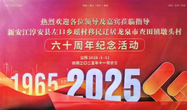 墩头村新安江移民60周年庆典纪实 (郑建新)2026年1月11日,龙泉市查田镇墩头村张灯结彩,锣鼓喧天。这个承载着新安江移民60载乡愁与梦想的村落,正以最隆重的淳安乡俗,庆祝移民扎根龙泉的甲子之约。