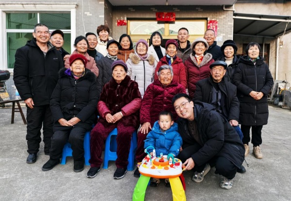 墩头村新安江移民余广美老乡四代同堂合影留念