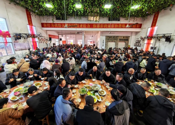 夜幕降临,乡宴在文化礼堂大厅铺开,成为庆典最暖心的篇章。餐桌上,既有米粿、麻糍等淳安特色美食,也有龙泉山珍的鲜香滋味,两种地域风味的交融,恰是移民文化与本土文化共生共荣的生动写照。