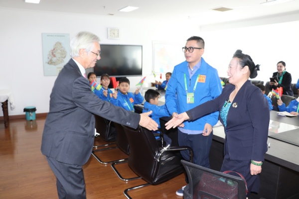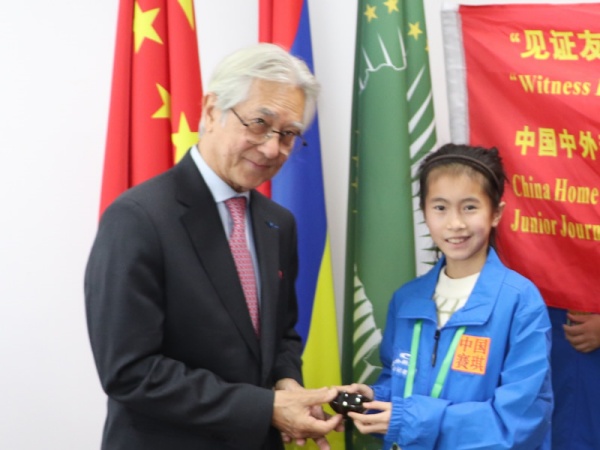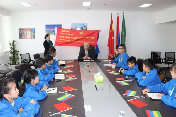 很快进入采访环节,有小记者问:您好大使阁下!我们小记者能采访您感到非常高兴,您是一位出色的外交官,两周前您在北京人民大会堂向习近平主席递交国书,正式成为毛里求斯驻华大使。你认为:中毛两国青少年将如何传承中毛建交60年来的宝贵友谊?谢谢! Then, junior journalists started the interview questions. “Hello Ambassador! We are so happy to have this interview with you today. As an outstanding diplomat, you formally presented your credentials to President Xi in Beijing two weeks ago, officially become the Ambassador of Mauritius to China. In your views, how will the youth of China and Mauritius carry forward the precious friendship over the past 50 years since the establishment of diplomatic relations between our two nations? Thank you!”