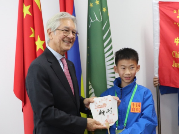 毛里求斯驻华大使萧晓山阁下(H.E.Mr.Gaetan Michel Siew Hew Sam)为小记者们签名