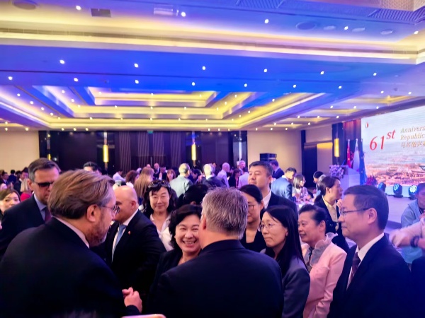 当晚的会场,华春莹副部长分别同出席马耳他61周年国庆招待会的各国驻华大使见面,大多都是华春莹的老朋友,他们一一交流,互相问候。他们是:马耳他驻华大使白瀚轩阁下(H.E. Mr. John Busuttil),瑞士驻华大使白瑞谊阁下(H.E. Mr. Jürg Burri),阿根廷驻华大使马致远阁下(H.E.Mr. Marcelo Gabriel Suárez Salvia),克罗地亚驻华大使达里欧·米海林阁下(H.E. Mr. DarioMihelin),土耳其驻华大使塞尔丘克·于纳尔阁下(H.E. Mr. Selçuk Ünal),爱沙尼亚驻华大使韩朔阁下(H.E. Mr. Hannes Hanso),斯里兰卡驻华大使马金达•贾升和阁下 (H.E. Mr. Majintha Joseph Priye Jayesinghe),希腊驻华大使卡尔佩利斯阁下(H.E Mr. Evgenios Kalpyris),印度驻华大使罗国栋阁下(H.E.Mr.Pradeep Kumar Rawat),菲律宾驻华大使杰米·弗古律斯(Jaime Florcruz),牙买加驻华大使亚瑟·威廉姆斯(H.E. ArthurWilliams),尼日尔共和国驻华大使加尔巴·塞尼阁下(H.E.M. Garba Seyni)和联合国驻华协调员常启德阁下(H.E Mr. Siddharth Chatterjee)等。记者看到,每一位驻华大使看到华春莹特别亲切,大家有说有笑,回忆曾经时刻,展望美好未来。