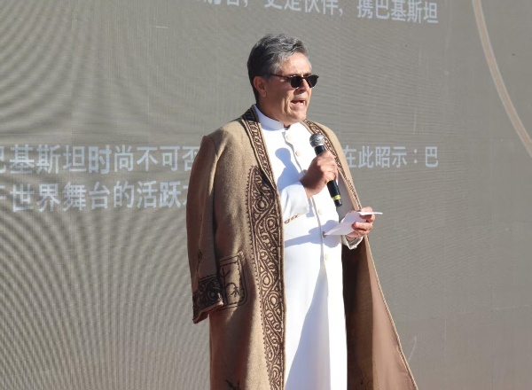 巴基斯坦驻华大使哈什米阁下(H.E.Mr. Khalil Hashmi)致欢迎辞。他说,雄伟的八达岭长城为颂扬丝绸之路联结的鲜活精神提供了绝佳舞台,这种精神如今已化身为一座承载面料、艺术与友谊的现代桥梁。他特别指出,本次活动恰逢巴基斯坦首位国家领导人参观长城六十周年,意义非凡。大使强调,本次展演以融合之道、商业智慧与巴基斯坦时尚实力为驱动,彰显了巴基斯坦创意与中国市场间的天然协同效应,为共创未来架设了新的商业桥梁。